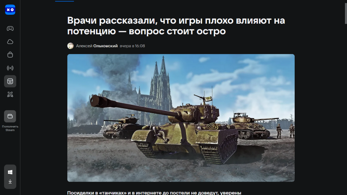 Новость сегодня была на одном игровом портале. Не игры влияют на это а употребление алкоголя в большом количестве, курение, стресс и тревожность, вот это все влияет на потенцию а не комп игры. Это все очередной предлог что бы потом заблокировать стим.