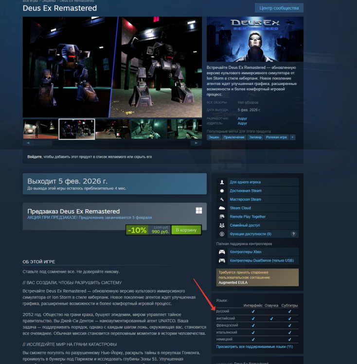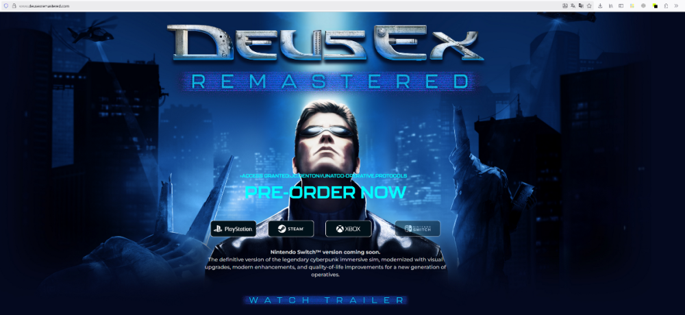 Игра будет доступна как минимум на PlayStation 5, а о других платформах пока информации нет. Веб-страничка https://www.deusexremastered.com/ , указанная в конце трейлера, пока что ведёт в никуда: Владельцы же консолей PS5 cмогут оформить предзаказ в PlayStation Store в ближайшие сутки!