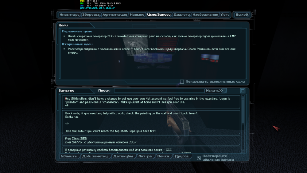 Сделал новую сборку перевода. Диалоги подогнаны под ConFix, плюс незначительные правки. Также в архиве приложены файлы интерфейса для GMDX версий 9.0.3 и RSD 2.1 - содержимое соответствующей папки надо поднять до Deus Ex\System\ и можно играть.
